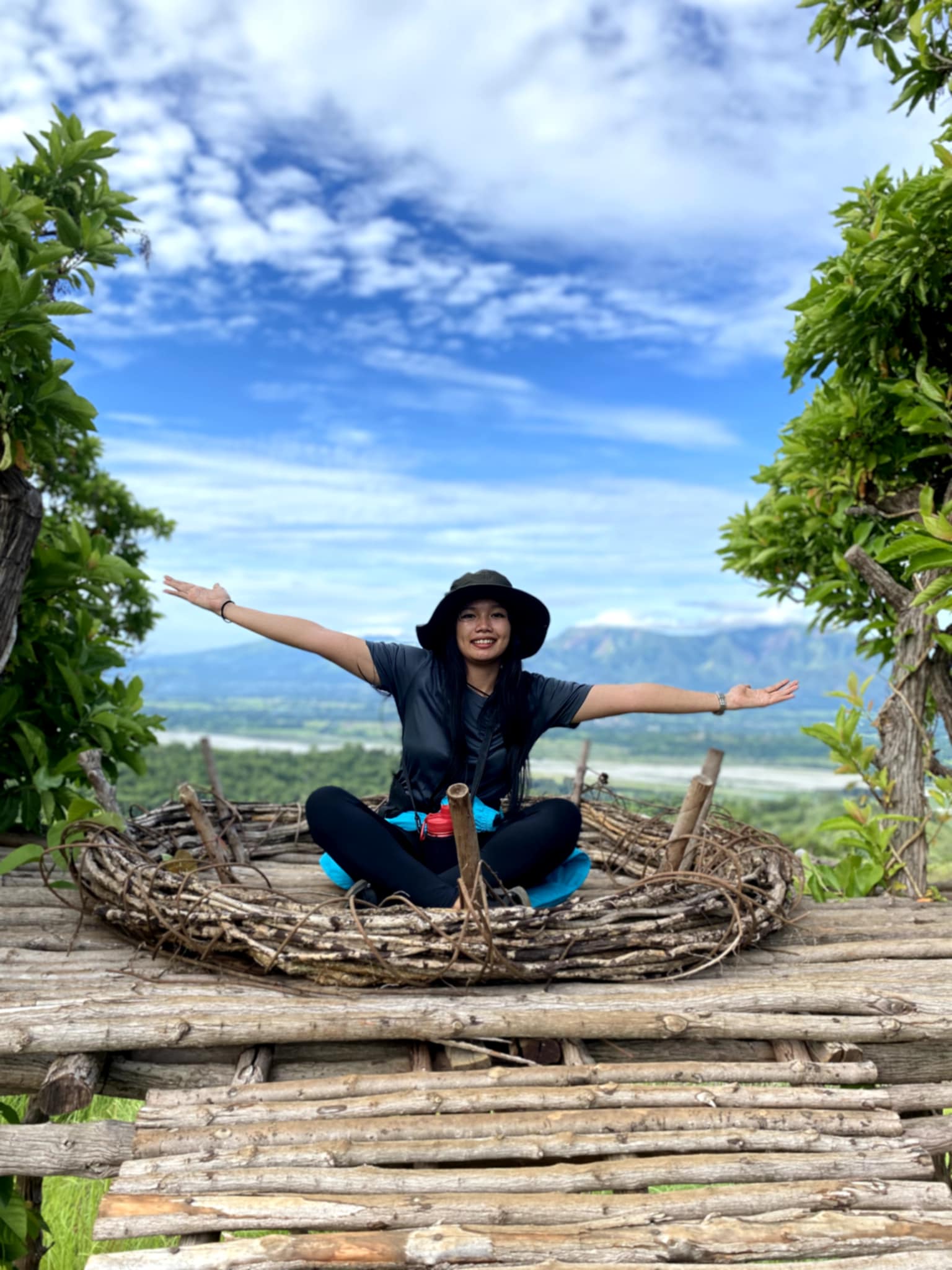 Hikers battle through intense winds on hillside in the Philippines