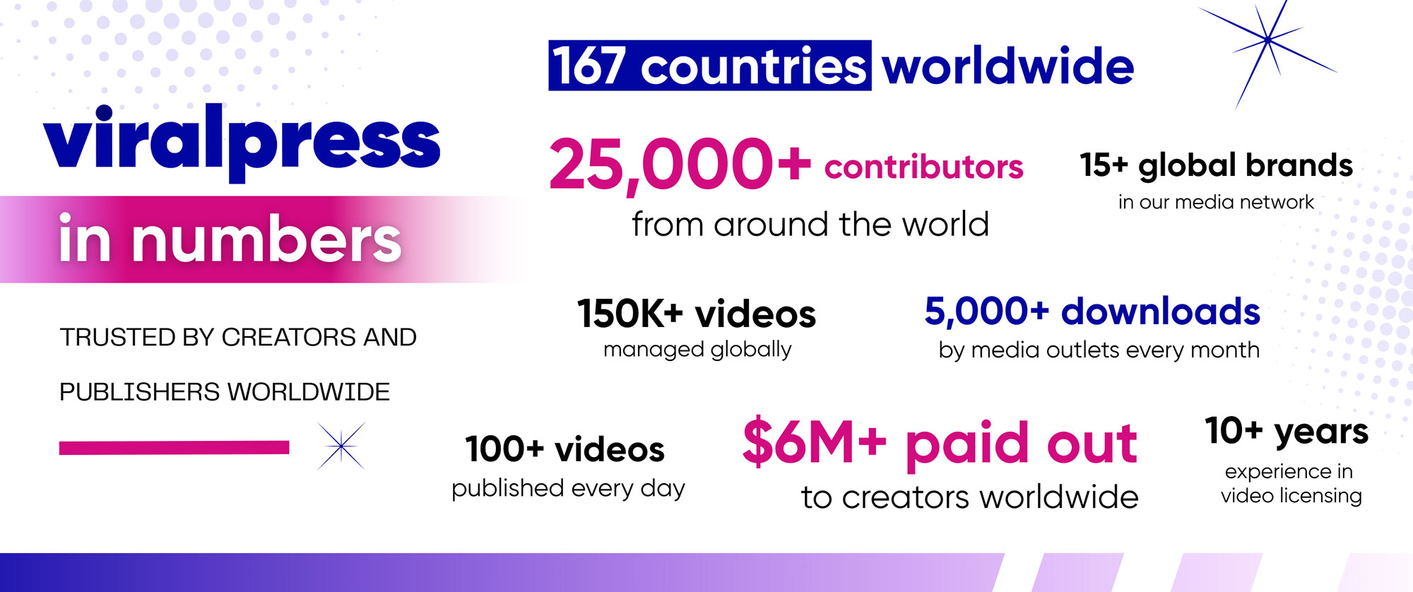 You're a content creator with a large following on Facebook, TikTok or YouTube and you have an existing revenue stream from that. Great work! Add another avenue for monetising your videos to the max by distributing them to the media. We understand how important your brand is, so we'll make sure your credit is displayed prominently to drive more traffic to your channels.