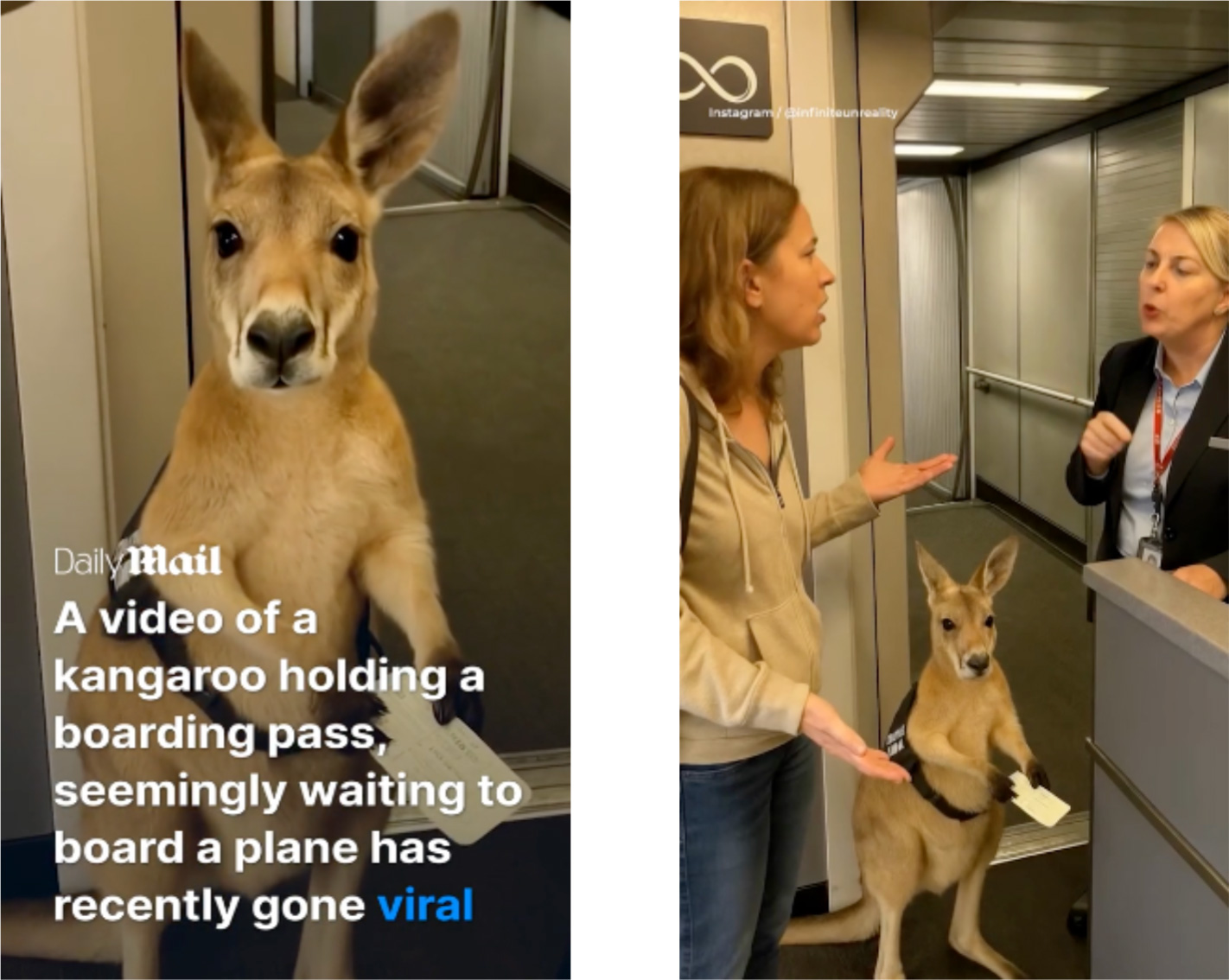 An AI-generated video of a kangaroo holding a boarding pass while waiting to walk onto a plane was featured on the Daily Mail. The report states clearly that the video was computer-generated. ‘The kangaroo video was actually created by AI - and the internet is panicking in response to finding out that they were successfully tricked,’ they write.