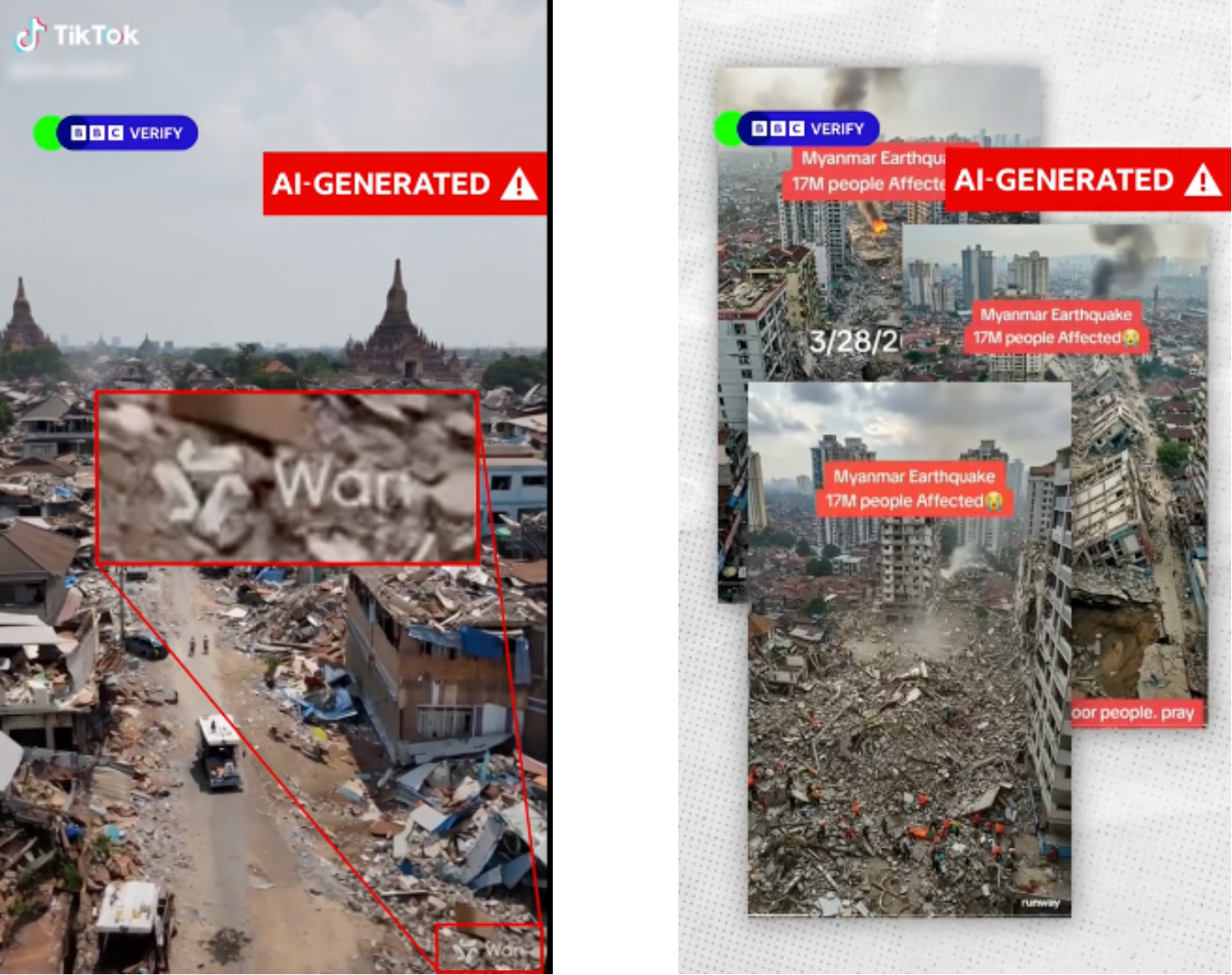 The BBC Verify service explained how this video of an earthquake was generated by AI. It was proven to be fake but received millions of views. They claim it was one of several fake AI videos that emerged in the aftermath of the earthquake in Myanmar.