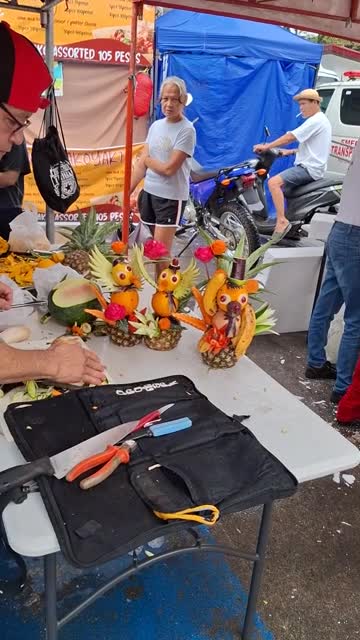 Artists carve fruits and vegetables into animal figures at Philippine festival