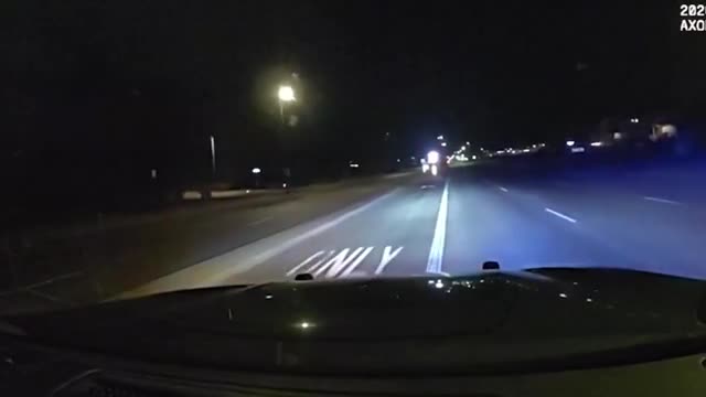 Stolen car goes airborne in front of police cruise during dramatic chase