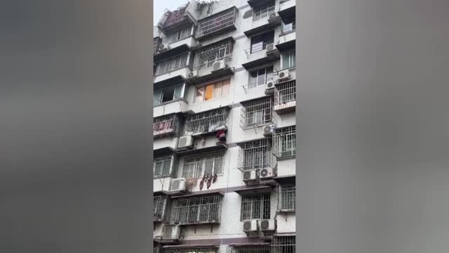 Hero courier scales building to save two-year-old hanging outside apartment window