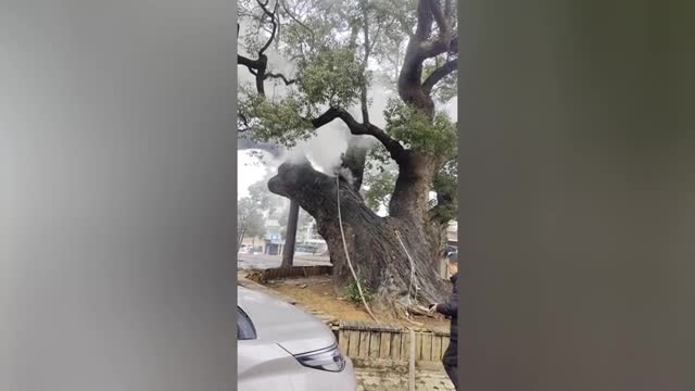Ancient 1,200-year-old Camphor tree set ablaze but saved after 10-hour fire battle