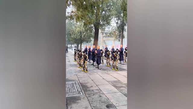Shaolin monks train side-by-side with Kung Fu robots in China
