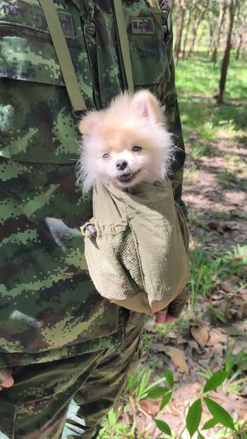 The two-month-old pooch named August snuggled inside the officer's water container bag hanging around his neck while they carried out the mission in Sisaket, northeast Thailand. 2026-04-02 21:02:42