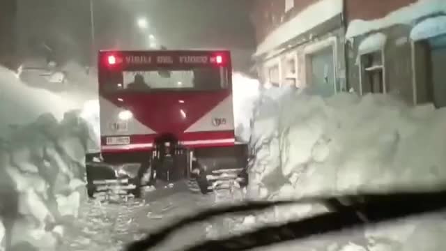 The fire brigade deployed tracked all-terrain vehicles to navigate snow-covered roads during a snowstorm in Pescopennataro, in the province of Isernia. 2026-04-02 21:07:40