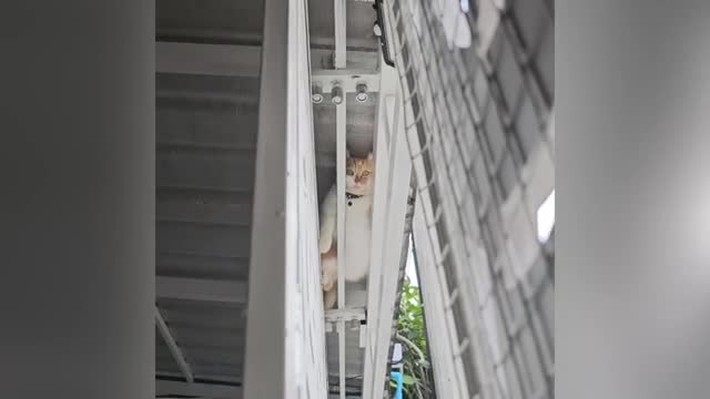 Jin Pao, the three-year-old American Curl mixed feline, was spotted by its owner lying in an awkward position on the bar of the metal ceiling in Nonthaburi, Thailand. 2025-12-01 13:54:12