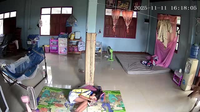 CCTV footage shows the youngster resting on her side while tapping her smartphone for a game when two brown bovines entered the house in Si Sa Ket, Thailand. 2025-11-19 13:59:56