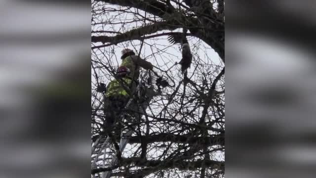 Footage shows the heavy equipment lifting a section of the 100ft tree when it toppled under the weight of the base section in Manaus City, Brazil, on November 23. 2025-11-26 22:18:42