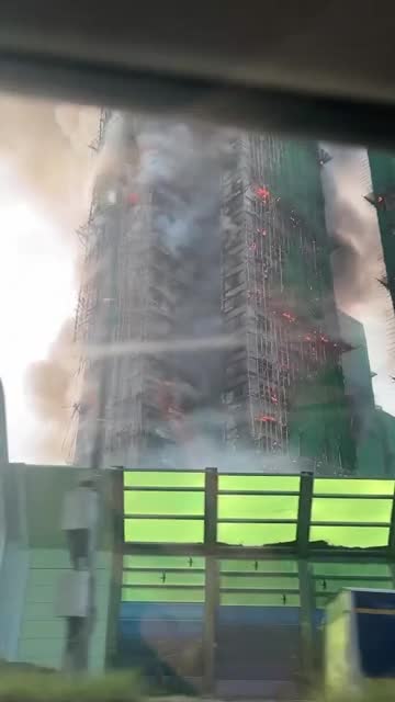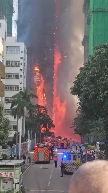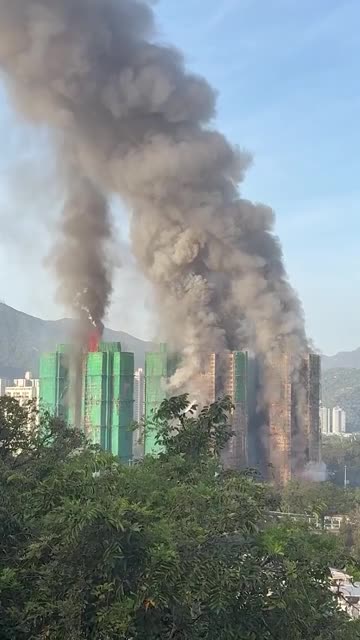 Footage shows flames ripping through the structures while smoke poured from the Wang Fuk Court complex in the northern Tai Po district. 2025-11-26 17:44:17