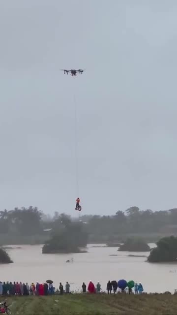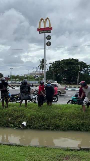 A local was filming the flood situation in her neighbourhood when she saw the canine bringing her white pup to safety, away from a flooded bridge in Trang. 2025-11-28 14:33:33