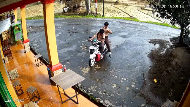 Schoolboys Erpan and Zoya, both 14, were riding a scooter as they headed towards the restaurant's parking area in West Java, Indonesia. 2025-12-01 13:53:27