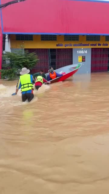The volunteers were setting off to evacuate residents but struggled to operate their speedboat through three-foot floodwaters in Songkhla province on November 26. 2025-11-28 16:59:48