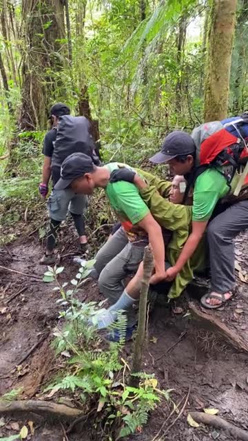 Footage captured by Clark Jay Dela Cruz shows the elderly man wearing a green jacket hopping at the back of one of the tour guides as they descend at Mount Apo in Kapatagan, Davao del Sur. 2025-12-01 14:18:52