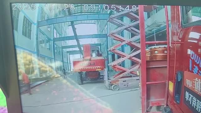 CCTV footage shows the labourer being lowered down a lift while a crane operator moves the metal slab in the air near him in Shandong, China. 2025-12-01 16:36:55