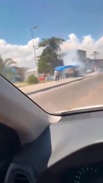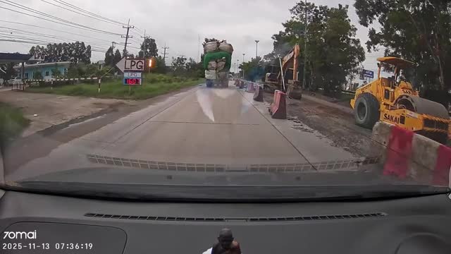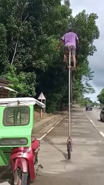 Footage captured by Kerwin Viaros shows the pedaller aboard the 20ft giraffe unicycle carefully manoeuvring on the outer lane of the motorway in Cagayan, the Philippines.