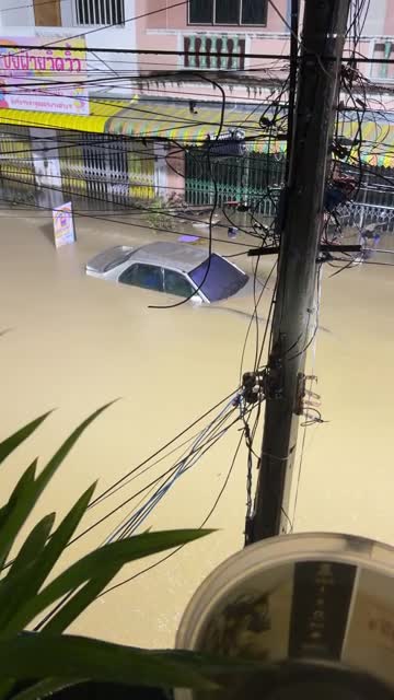 Gate Siriwan noticed the 18ft reticulated python slithering across the hip-deep murky water in Hat Yai District, Songkhla Province. 2025-12-15 14:30:55