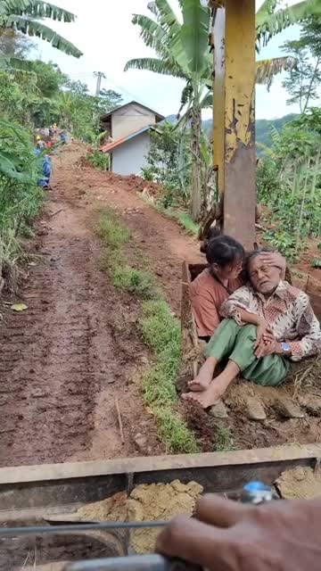 The elderly resident was rushed to the hospital, but an ambulance could not pass through the muddy, rough road damaged by recent bad weather in Bandung, West Java, Indonesia. 2025-12-15 20:44:20
