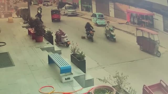 CCTV footage shows the female motorist dropping her shopping bag in the middle of a road, prompting the passing rider to stop, pick it up, and hand it back to her in Henan, China. 2025-12-22 21:13:55