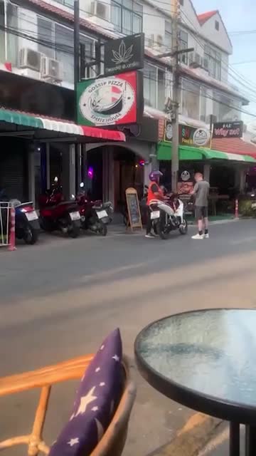 Footage shows the internet celebrity, 59, fumbling in his pocket for change while the rider in an orange vest waits for him in Pattaya, Thailand. 2025-12-22 19:21:18