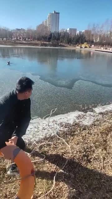 A group of locals spotted the helpless canine struggling in the icy water and immediately jumped into action to rescue the animal in Gansu, China. 2025-12-22 14:46:35