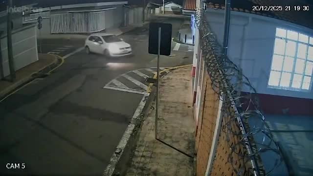 CCTV footage shows a white car pulling up outside a fire department building as two women rush out, one carrying an infant and ringing the doorbell in the Andradas region of Minas Gerais, Brazil. 2025-12-22 19:08:48