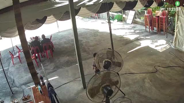 Chuang and Sai Thong were chatting in front of the house while their grandson, Mayu, played nearby in Phetchabun Province, Thailand. 2025-12-24 14:41:16