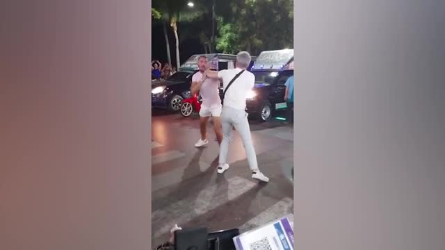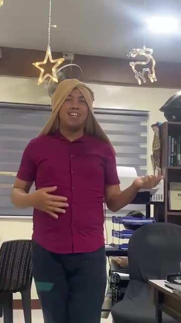 Footage shows the man wearing turban-like headwear, yodelling while holding an invisible guitar and strumming it in Davao, the Philippines. 2025-12-25 14:11:55