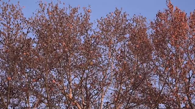 Footage shows the avians perched on withered trees, creating a stunning illusion of dark, rustling leaves in Xuzhou, Jiangsu Province. 2025-12-25 14:11:39