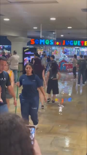 Footage shows locals wading through the deluge as staff scrambled to mop up the water at the Unicenter building in the AMBA district. 2025-12-26 12:01:36