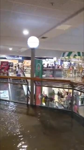 Footage shows locals wading through the deluge as staff scrambled to mop up the water at the Unicenter building in the AMBA district. 2025-12-26 12:02:36