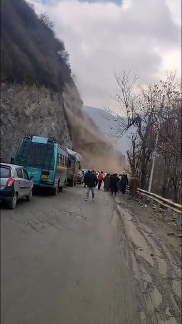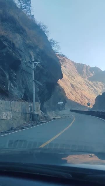 Dashcam footage shows the terrifying moment boulders and debris cascaded onto the 248 National Highway in Ganzi, Sichuan, causing a total road blockade. 2026-01-07 21:18:27