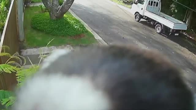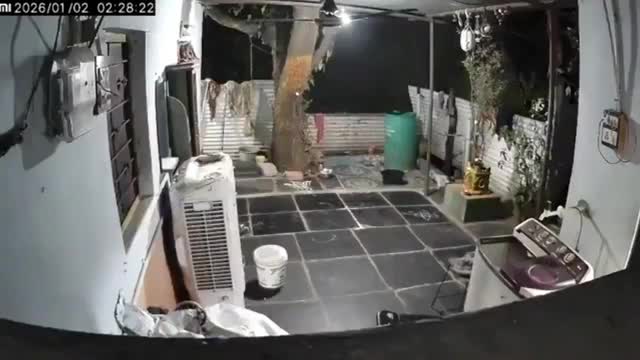 The stray pooch was startled by the loud celebrations and squeezed into the 12 inch (30 cm) space to seek shelter in Nakhon Si Thammarat, Thailand. 2026-01-07 17:16:24