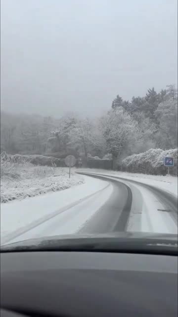 Footage shows snow rapidly accumulating on the N118 highway near Bievres in Ile-de-France, reducing visibility and creating hazardous driving conditions. 2026-01-07 16:54:58