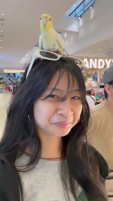 Footage shows the teenager walking through the Evia Lifestyle Centre in Metro Manila, the Philippines, with Leyla, her yellow cockatiel, perched firmly on her head. 2026-01-07 21:22:19