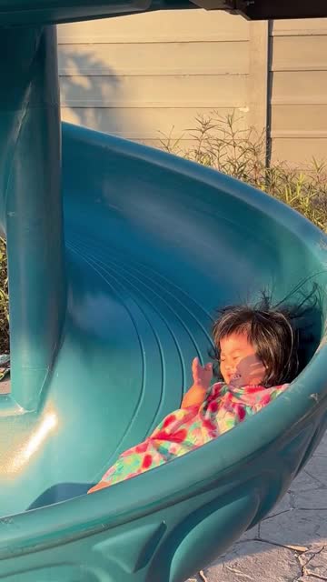 Footage captured by Jacky Ticomporn shows her adorable three-year-old kid, Kirin, lying flat on her back as she carefully glides down the blue spiral slide at a park in Samut Prakan, Thailand. 2026-01-08 22:02:38