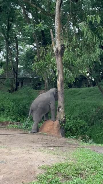 Zookeeper Mubyar Nur Khaliq spotted Nisa, the playful juvenile pachyderm, rubbing her trunk against the tree at Way Kambas National Park in Lampang, Indonesia. 2026-01-09 14:43:20