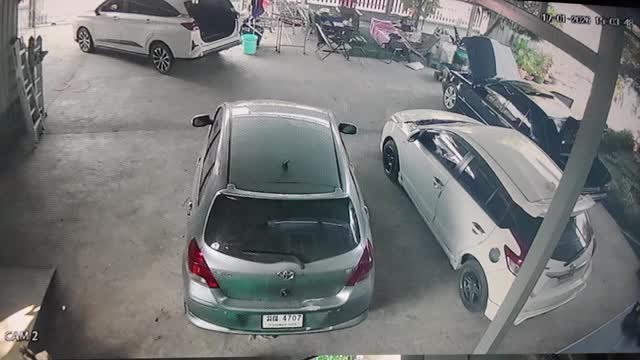 The vehicle technician and his son inspected their black sedan that had been parked idle for a month when it suddenly emitted fire from its engine bay in Phra Nakhon Si Ayutthaya, Thailand.