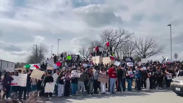 Footage shows teenagers gathered on the roadside to demonstrate against US Immigration and Customs Enforcement on Monday in Pflugerville. 2026-02-04 21:41:46