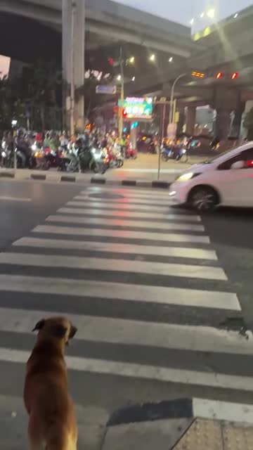 Zhang spotted the brown pooch waiting patiently on the kerbside for the green light at the Rama IX Intersection in Bangkok, Thailand. 2026-02-04 21:53:39