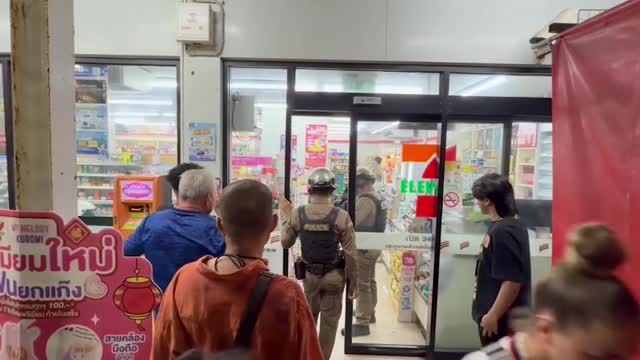The holidaymaker's shirt became lodged in the handrail mechanism of the moving stairs, prompting nearby mallgoers and security personnel to rush to his aid in Chiang Mai. 2026-02-13 14:23:17