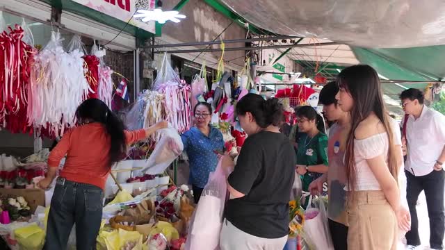 Shoppers flocked to Pak Khlong Talat, Thailand's largest wholesale and retail flower market, where colourful roses, sunflowers, and lilies were in full bloom. 2026-02-13 17:31:25
