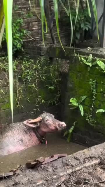 Stranded buffalo rescued from septic tank in Indonesia