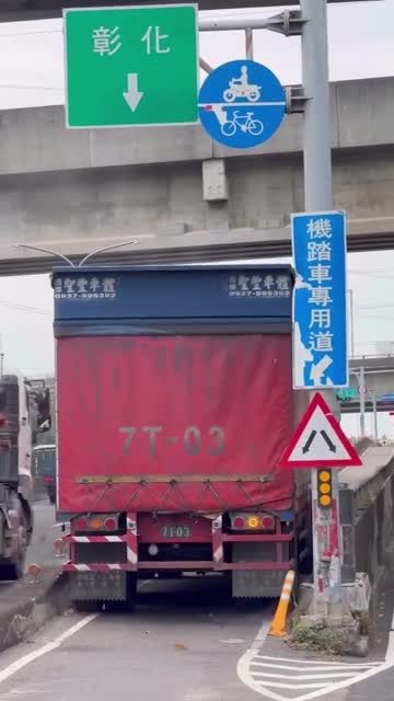 Footage captured by Bryan Weng shows the container lorry slowly manoeuvring along the two-wheeler lane on Wuri Huanhe Road in Taichung City, Taiwan. 2026-03-05 13:19:47