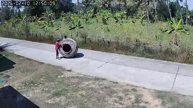 CCTV footage shows an elderly man and a passerby carefully moving the 60-year-old clay container back to the pensioner's home to collect rainwater in Surin, Thailand. 2026-03-05 13:26:12