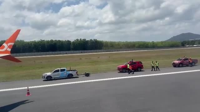 The Air India Express flight IX938 slammed onto the runway at the Phuket International Airport shortly before midday. The wheel came loose before the metal landing gear crashed onto the surface. 2026-03-11 17:03:13