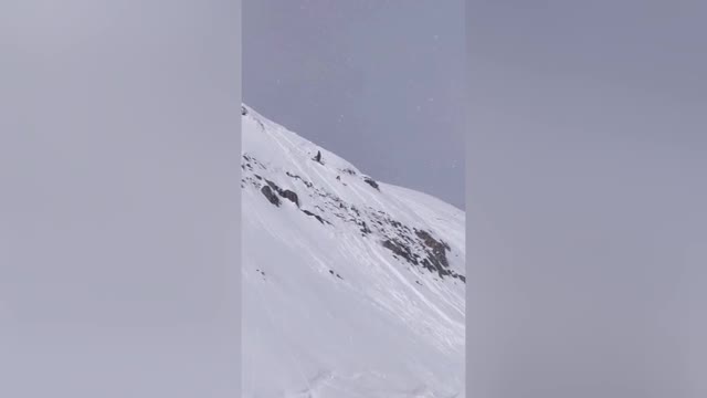 Footage shows the woman edging down the snow-covered terrain before plunging violently across the slope in the Xinjiang Uyghur Autonomous Region, China. 2026-03-12 13:21:55