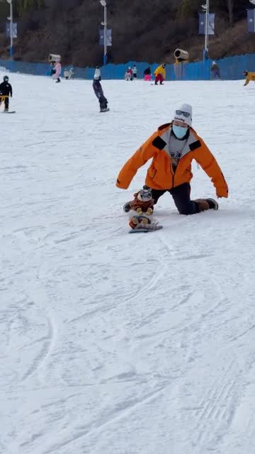 Footage shows Liu, the adorably white and grey feline wearing a visor, jacket, and shoes, sitting still on the moving snowboard at Genting Miyuan Park in Hebei, China.