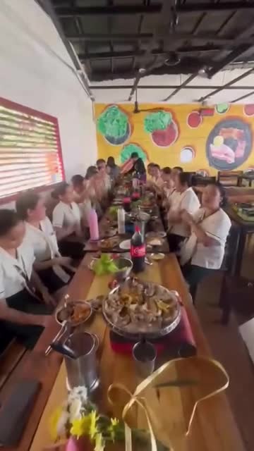 Footage captured by Giselle Sabido shows the white-and-brown Aspin lying on its stomach next to the youngsters performing the isometric core-strength exercise at the University of Eastern Philippines in Northern Samar.